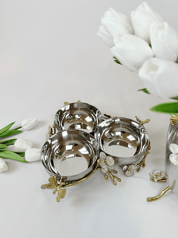 The Orchid Collection features handcrafted pieces with white orchid accents and butterfly motifs, combining elegance with durability for both entertaining and everyday use